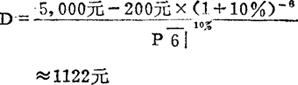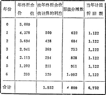 将固定资产成本视为各期折旧费用(年金)和残值的现值的一种折旧计算方法。 这一方法是将固定资产估计残值的现值从固定资产原值中减去,其余额即为折旧费用的年金现值;再将其除以年金现值系数,所得之商即为每期应提的折旧额(视同年金的分期收回数)。其计算公式为:  式中,D为每期应提折旧额,C为固定资产原值,S为估计残值,n为使用年限,i为年利率,(1+i)-n为复利现值系数, 为年金现值系数。 例如,某项固定资产原值5,000元,估计残值200元,可使用6年,年利率为10%,按年金折旧法计算,每年的折旧额为:   年金折旧法的特点是,每年计提的折旧额是相等的,这一相等的折旧额可以分为两部分:一部分是固定资产折余价值上的投资利息(年初折余价值×年利率);另一部分是固定资产原值的分摊数(当年计提折旧额-投资利息)。 采用这一方法,将未实现的投资利息也计入了营业成本,这在理论上是个弱点,因此它很少在实际计算折旧时采用。但在选择长期投资方案时,这种方法提供的计算资料可供决策参考。 |