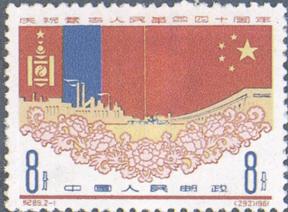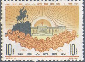 释义 | 庆祝蒙古人民革命四十周年 发行日期:1961年7月11日 齿孔度数: 印刷版别:影写版 图幅:36×26.5 全张枚数:50(5×10) 设计者:孙传哲 印刷:北京邮票厂 (1)8分 中蒙友谊 540万枚 (2)10分 蒙古政府大厦 240万枚 (1)-(2) 2枚全 |