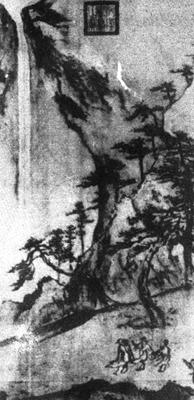 【作品赏析】: 这幅山水画在左上角绘远景:两峰之间,瀑布湍流而下,很有气势,把庐山高险、清秀的瀑布展示在人们面前。 右下角的近景绘有数位观瀑者,边看边议,似乎被这奇景吸引住了,显得乐趣怡然。画人物虽然意笔草草,不甚求精,但各人神态皆备。这是借人赞景,主从关系明确,更加深化了主题。 中景峰树斜隔,表现了景深层次,更借峰树的大小、近远,衬托出瀑布的高耸雄伟。 作者构思慎密,布局有章,反映了他具有很高的艺术修养。 作者以独创的指画描绘山水,难度较之线描人物更大。 而从面上看,作者指画的表现力是丰富、巧妙的,山峰叠置,树木丛生,瀑布飞溅,在用指用墨方面都很有特色。。  清 高其佩 轴 绢本指画浅设色 纵98.4厘米 横49.8厘米 藏台北故宫博物院 |