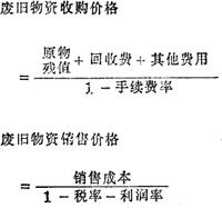 释义 | 废旧物资价格 国营商业部门对社会生产和生活中废旧物资进行收购和销售的价格。 废旧物资经过回收、分类、整理、加工等系列过程,不仅保持原物的使用价值,而且还会创造一定的新价值。它是节约社会资源、创造社会财富、增产增收、变废为宝的重要途径。因此,废旧物资价格在价格体系中占有重要的位置。 制定废旧物资价格的原则是: 废旧物资价格分为收购价格、销售价格两类。收购价格由收购成本和手续费构成。其中,收购成本包括:原物残值、回收费(工具物件费、房屋、仓库等维修、折旧费、工资及工资附加费)、其他费用(利息、损耗和经营管理费)。 废旧物资收购价格是制定销售价格的基础和主要依据。废旧物资销售价格,由销售成本、税金和利润构成。 其中,销售成本主要包括:收购价格、加工费、包装费、仓储费、保管费、利息、损耗、经营管理费等项目。废旧物资收购环节不征税,零售环节按销售金额的3%纳税。 废旧物资收购价格和销售价格的计算公式是: |