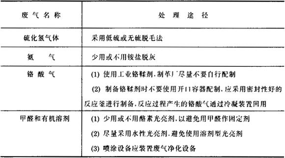 对制革生产过程中产生的有害废气处理的途径归纳如表6-19。