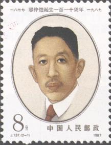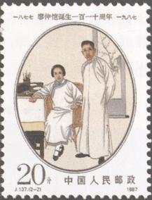 释义 | 廖仲恺诞生一百一十周年 发行日期:1987年4月23日 齿孔度数: 印刷版别:影写版 图幅:30×40 全张枚数:50(10×5) 设计者:何家英 印刷:北京邮票厂 (1)8分 廖仲恺像 1482.4万枚 (2)20分 廖仲恺与何香凝 964.15万枚 (1)-(2) 2枚全 |