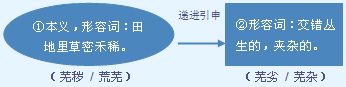 字源解说 无,既是声旁也是形旁,表示没有。芜,篆文 = (艸,植物,代庄稼)+ (無,没有),造字本义:田地里野草茂盛、庄稼稀少。俗体楷书 用 代替正体楷书 的 。因为战争或洪灾的毁灭性破坏,田园草盛人稀,叫做“荒”;因为庄稼地辍耕,草盛禾稀叫“芜”。 附 文言版《説文解字》:芜,薉也。从艸,無聲。 附 白话版《说文解字》:芜,草被割尽。字形采用“艸”作边旁,“无”是声旁。 引申线索