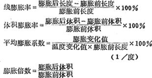 指材料在温度和湿度的影响下,由于其物理状态发生变化以及外部物质发生化学反应等因素所引起的体积胀缩变化,反映材料膨胀性能的指标有线膨胀率、体积膨胀率、膨胀系数、膨胀倍数等。