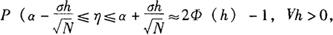 (二)大量同型防火单位总火灾损失的估计 考虑N个与A同型且相互独立的防火单位A1,A2,…,AN,N是很大的自然数。假定A的资产为S,火灾发生率ξ的数学期望E(ξ)=α和方差D(ξ)=σ2已由上边的方法得到,因而Ai的火灾发生率ξi的数学期望E(ξi)=α和方差D(ξi)=σ2(i=1,2,…,N)也都是已知的。现在来估计这些防火单位的火灾损失总和。 记A1,A2,…,AN的总体火灾损失率为η,则 由于ξi(i=1,2,…,N)具有同一概率分布,且相互独立,所以,根据中心极限定理,有 就是说,随机变量η随著N的无限增长,渐近于以α为数学期望、 由此可得 这就是说,如果认为η∈[ 也就是说,如果认为η∈[ 称ηε=α+ |