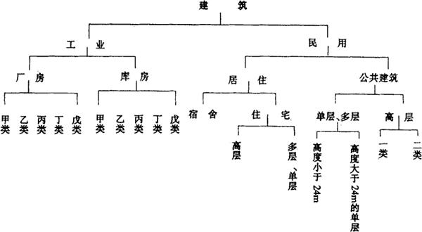 释义 | 建筑物的防火设计分类 根据建筑物的使用功能、火灾危险性以及火灾情况下人员撤离等因素,把各类建筑物划分为若干等级,这是国内外防火设计规范共同采用的一种方法。但是由于国情不同,对问题研究的深度不等,所以各国的规定也不尽相同。通常是按照对建筑火灾影响最大的两个因素,即建筑的用途和建筑的高度进行分类。例如法国的建筑防火设计规范中,一般将民用建筑分为公共、居住和高层三类而分别加以考虑,如将公共建筑统一划分为五类(划分的基本参数是建筑物内容纳人数的多少): 第一类建筑,容纳人数在1500以上; 第二类建筑,容纳人数在701~1500之间; 第三类建筑,容纳人数在301~700之间; 第四类建筑,容纳人数在300以下,但不属于第五类; 第五类建筑,容纳人数小于安全规则规定的最小值。 这五类建筑的重要性依次递减。 又如:居住建筑被划分为四类(划分的依据主要是建筑高度): 第一类,高度为2层的独立建筑或与其他同类建筑并联的房屋; 第二类,高度为3层的建筑; 第三类,高度不超过28m,且不超过7层的建筑; 第四类,高度在28~50m之间的建筑。 确定建筑的分类和耐火等级是国内外建筑防火设计的基础。 建筑是人类从事生产、生活和社会活动的最基本条件。建筑通常包括建筑物和构筑物。建筑一般按照其用途或高度、结构形式等来划分。根据建筑内生产、生活的火灾危险性和建筑高度、结构对建筑火灾以及扑救火灾的影响进行建筑的分类,是我国有关建筑设计防火规范编制的基础。我国国家标准《建筑设计防火规范》和《高层民用建筑设计防火规范》按照用途将建筑划分为民用建筑和工业建筑两类。民用建筑又划分为公共建筑和居住建筑。按照高度又可将建筑划分为高层、多层和单层三类。建筑的分类可用表3-2-1表示。 表3-2-1 建筑物的划分 |