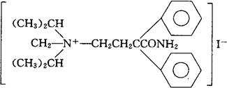 | 释义 | 异丙碘铵[中] C23H33IN2O=480.43 CAS-71-81-8 CAS-7492-32-2(isopropamide) γ-(氨基羰基)-N-甲基-N,N-双(1-甲基乙基)-γ-苯基-苯丙铵,碘化物。 γ-(Aminocarbonyl)-N-methyl-N,N-bis(1-methylethyl)-γ-phenyl-benzenepropanaminium,iodide. 3-(甲氨酰-3,3-二苯丙基)二异丙基甲基铵碘化物。 3-Carbamoyl-3,3-diphenylpropyl)diisopropylmethylammonium iodide. 抗胆碱药,副交感神经解药。 Isopropamide Iodide,Tsoproponum Iodide,Darbid,Dipramid,Embamide,Isamid,Marygin M,Piaccamide,Priamide,Priazimide,Raspon,Sanu-Icin,Tyrimide. INN,BAN,USAN,USP.