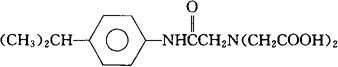 C15H20N2O5=308.33 CAS-66292-53-3 N-(羧甲基)-N-[2-[[4-(1-甲基乙基)苯基]氨基]-2-氧代乙基]甘氨酸。 N-(Carboxymethyl)-N-[2-[[4-(1-methylethyl)phenyl]amino]-2-oxoethyI]glycine. [[对-枯烯基氨甲酰基)甲基]亚氨基]二乙酸。 [[p-Cumenylcarbamoyl)methyl]imino]diacetic acid. 诊断用品。 用于肝功能的测定。 Pipida,Iprofenin. USAN.  |