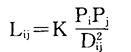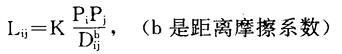 这一模式是由美国普林斯顿大学的天文学家斯图尔特提出的。 本世纪40年代,他观察到在普林斯顿就读的学生相应减少。他开始研究这种与牛顿万有引力理论极为相似的现象,并形成所谓社会物理学派。他认为,若两个城市人口规模分别为P1、P2,两城市间距离为Dij,则两城市的人口引力  式中,K为经验常数。后来的学者斯蒂沃特和热夫提出一个表示两地相互作用更为通用公式,即:  这就是区域经济学和区位论中使用的基本引力模式。 它可表示两城市(或区域、经济点等)之间的货流、业务流、信息流、人流等的强度。利用此模式还可推出一些具体模式如潜能模式等。 |