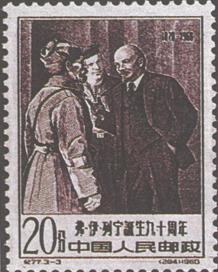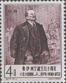 释义 | 弗·伊·列宁诞生九十周年 发行日期:1960年4月22日 齿孔度数: 印刷版别:(1)(3)雕刻版;(2)影写版和雕刻版 图幅:26×35.5 全张枚数:50(10×5) 设计者:卢天骄 雕刻者:孙鸿年、孔绍惠、唐霖坤 印刷:北京邮票厂 (1)4分 列宁在演讲 600万枚 (2)8分 列宁像 800万枚 (3)20分 列宁和近卫军谈话 200万枚 (1)-(3) 3枚全 |