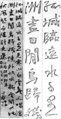 【简介】: 现代·于右任书。纸本。行书。五言律诗一首赠春渠先生。凡三行,共五十五字。刊于《当代名人书林》。 【赏析】: 于右任此件爲碑体行书。通篇酣畅淋漓,寓巧于拙。用笔精熟中见生辣,结字质朴中见巧妙。字体多取横势,用笔中侧方圆并施。擒纵自如,收放有致。如“城”字戈鈎收敛,“里”字放纵,造成对比,字多独立,而行气贯一。“秋”字左斜,“起”字右倾,在统一中造成动势。题款与正文浑然一体,上款字小不觉其小,下款字大不觉其大。用小印补于“任”字左下空挡,更觉别致。于氏对北碑用力尤勤,“朝临石门铭,暮学二十品”,可谓深得魏书三昧。更难能者,以魏书写行楷臻入化境。或谓其行楷远胜草书,观此条幅,当有所悟。