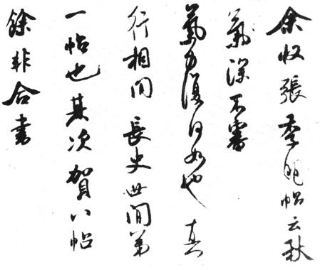 释义 | 张季明帖 【简介】: 宋·米芾书。纸本。行书。凡六行,三十九字。26.2×32.6cm。《式古堂书画滙考》、《墨缘滙观》、《石渠宝笈》著录。现流失日本。刊于日本《书道全集》(十五)。 【集评】: 明项元汴跋:“沈著痛快,且萧散简远,气雄韵胜,实与逸少同调合度,故其专名云。”淸安岐《墨缘滙观》:“笔法精健。” 【赏析】: 像这类札记性质的短章,在米芾传世的墨迹和刻本中是屡见不鲜的。由于顺忽记下一些随想,便应了他“无刻意做作乃佳”的话头,不过这件可定在“改字”之前所作的精品,无疑又是“振迅天眞,出于意外”中的佼佼者。 米芾对前贤的评价,有时会故作惊人之语。他的“张顚俗子,变乱古法”的呵斥,确是惊世骇俗。但或许是早期,也或许是私下,却不仅“追写”,而且有些心折,这是本帖告诉我们的眞实内容。“帖云”以下至“何如也”是张帖原文,“也”不接“眞”,显示段落之意。“气力”另起,意在追摹六字一笔书的壮气逸韵。有人取此六字与《中秋帖》相比,看透二者的相似,作出《中秋》是米所临的翻案结论,这是可信的。但《中秋帖》与大令《十二月帖》的不甚相似,倒给了我们一个啓发,即尽管米芾自述中不曾(或不愿)提及,但他“风樯阵马”本色的形成,得益于张旭的正复不少。 此帖的耐人寻味之处,还在于结字姿态的多变。“帖”、“气”、“也”、“间”等字都有二三次重複,却无脱墼之弊。其他如“余”“合”之首,“眞”“其”之足,也是竭尽变化之能事,使人深感他的“故作异”“自然异”的理论并非局限于一字之内,而是时时处处都在贯彻的。如果还应挑出白璧之玷,那么“明”字右侧的细笔就嫌过分瘦弱。虽“得笔细如毫髮亦圆”,但接写蟹爪鈎就未免凿枘难合了。 |