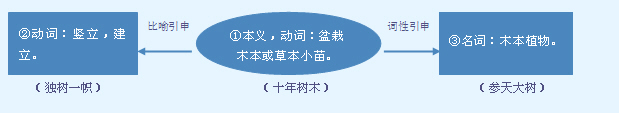 shù ❶动种植;培养。十年树木,百年树人。 →❷动树立;建立。树雄心,立壮志|建树 →❸名木本植物的通称。树林|松树|树枝 ❹量〈文〉用于树木。种橘千树 ○❺名姓。