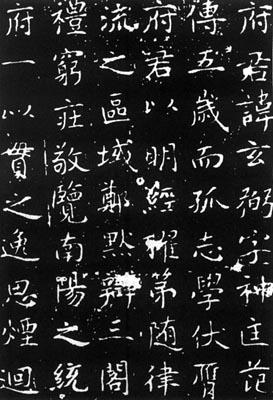 【简介】: 原题《唐故益州大都督府功曹参军事张君墓誌铭》。唐天授三年(692)正月刻。李行廉撰。正书。二十五行,行二十五字。57.6×54.9cm。淸道光年间在湖北襄阳出土,淸陆增祥《八琼室金石补正》著录。 【赏析】:  收而后放,是此墓誌书法的结构特点,与之相适应,其点划部旁的配合也很默契。凡笔划左向书写的多取逆势,鈎不轻踢而重推出,撇划多如竪引下,只于未端略略注意点出方向,竪则斜向右下,戈、捺使尽意伸展。致字的上部呈左前倾的态势,类如一些汉简、经书的抑扬韵律。通篇把玩,动感如远观队列操练,应令如左。 这种左敛右拓的结构美以及赖以组成这种结构美的笔划组合富有灵气,使我们毅然放弃去挑剔个别笔划的轻佻与缺憾,只用心去感受书写者似乎也著意追求的志趣:对力感的表现,并非局部力的表露,而是整体机制的力的潜藏。或许这能啓示我们,一种书艺情境的设造,并不止在于对外在点划形式的精雕细刻,更主要的在于对各部分之间相互配合的“度”的斟酌以及由此所暗示的某种趣向。 |