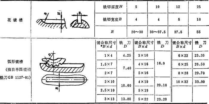 注:*d是铣削键槽时键槽弧形部分的直径。