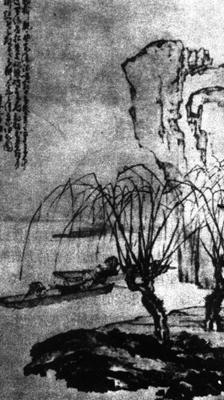 【作品赏析】: 此图观其画面,笔墨洗练,劲爽流畅,勾斫点染,在似不经意中,显示了他熟练的技巧。 近坡、渔舟、远滩和近柳、巉岩,成横直交错,这种井字形的布置,不仅给人有一种稳定感,而且有纵横舒展的气势。画面大片的留白,造成了天水一色,无限空旷的天地。景物略施淡赭和花青,不仅使色调清新典雅,而且表现了一种夕阳西下近黄昏的意境。对渔夫们收网弄篙、整理鱼筐的细节描写,不仅点出了一天辛劳,载歌渔归的题意,而且使画面有了动静的变化。左上角的草书题款,恰到好处,不仅填补并打破了这块长方形的空白,使画面有了疏密对比,而且也使构图显得严整。这幅画从笔墨、构图、设色的技巧,到构思、意境的匠心,都表现了深厚的艺术修养和功力,生活气息浓郁,颇有诗情画意,当是黄慎山水画中的精品之一。 。【作者介绍】: 黄慎(1687-1768后),字恭懋,一字恭寿,号瘿瓢子,又号东海布衣等,福建宁化人,有《蛟湖诗集》存世。 家贫,无以为生,自幼遵母意,坚志学画。从师上官周,不甘心居于人后,从怀素书法受到启发,从此以草书入画而自创风格。擅长粗笔写意,以人物造诣最高,花鸟、山水亦有特色,是“扬州八怪”中的全才画家之一。 他以卖画为生,一生飘泊潦倒,不得志。他对下层劳动人民怀有深厚的感情,那些纤夫、流民、樵人、渔翁、乞丐等等,往往是他热衷描绘的画题。。  清 黄慎 轴 纸本设色 藏扬州博物馆 |