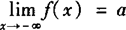 当自变量取负值并且绝对值无限增大时,如果函数f(x)无限趋近于一个常数a,就说当x趋向于负无穷大时函数f(x)的极限是a,记作,也可记作当x→—∞时,f(x)