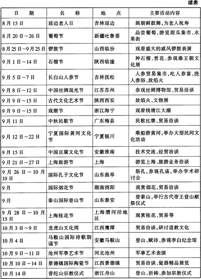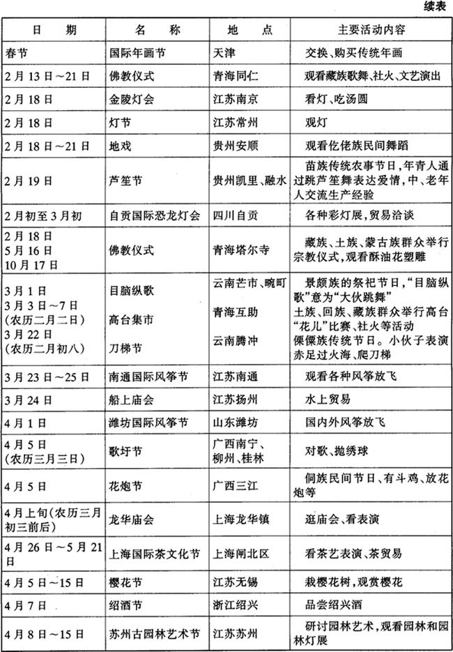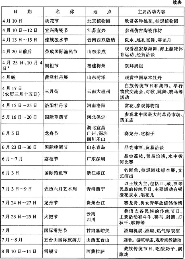 字词 当代中国部分旅游节庆日一览表