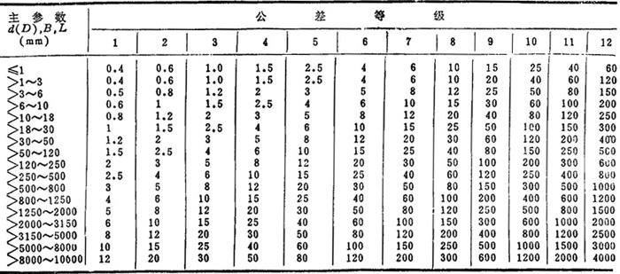 注:使用同轴度公差值时,应在表中查得的数值前加注“Φ”。主参数d(D),B,L图例