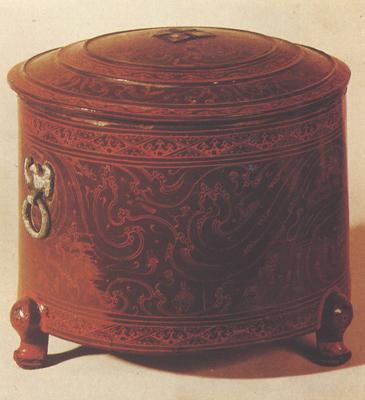字词 | 彩绘铺首衔环三蹄足漆奁 |