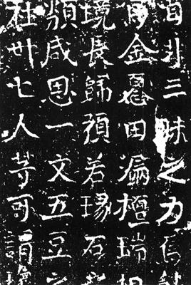 【简介】: 隋仁寿三年(603)十月刻。正书。十三行,行四十四字。有方界格。 【赏析】:  作爲比较少的隋代石刻之一,彭安生造像不同于龙藏寺、董美人等誌刻那样,有一种严整肃穆的庙堂气象。也许是地处偏远,或者是民间书手所爲的缘故,彭安生造像在意趣上更近于北魏造像。一种天眞烂漫、忘形适意的心境使书者没有受到更多的束缚。但是民间书法也是要受到时代的影响的,彭安生造像整篇都采用了十分宽博的结体,这在北魏书中是没有的。从中可以看到,到中唐被颜眞卿发展到一个新的高度的字形结构,在更早的时候就已经萌芽了,虽然还没有得到广泛的运用和书家的承认,但毕竟是一种新的尝试。 彭安生造像在刻法上体现了两个时代的过渡,开始注意毛笔书写效果在石刻上的精确反映,可是还远没有达到隋唐的高水凖,刀痕仍然比较重。特别粗重的笔划出现在结构特别简单的字中,如“之”、“力”等,这也是比较新的表现方式,在后世是被广泛运用的。在彭安生造像中,这类新旧风格的同时并存,构成了它的主要特色,也是它在书法上的价値所在。 |