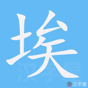 字源解说 矣,既是声旁也是形旁,是“挨”的省略,表示轻轻地贴着、靠着。埃,篆文 = (土,灰尘)+ (矣,“挨”,轻轻贴着、靠着),表示灰尘轻轻贴着物体。造字本义:名词,轻轻落在物体表面、一吹即飞的灰尘。古籍中“尘”与“埃”近义,但有所不同:飞土为“尘”,落尘为“埃”。附《说文解字》:埃,塵也。从土,矣聲。附《说文解字》:埃,落定的灰尘。字形采用“土”作边旁,“矣”是声旁。
