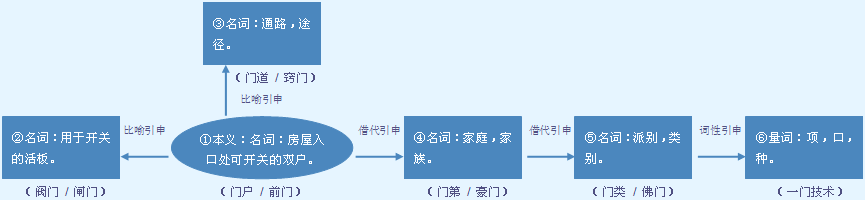 释义 | ![]() 房屋、车船等的出入口;形状或作用像门的东西。常作主语、宾语。 ~开了|随手关~。 用于炮、功课、技术等。常组成数量词组作定语。 两~高射炮|几~功课|学会了一~技术。 【词语】 门板 门鼻儿 门齿 门当户对 门道 门洞儿 门岗 门户 门户之见 门禁 门槛 门框 门类 门帘 门联 门楼 门路 门面 门牌 门票 门扇 门市 门闩 门庭若市 门徒 门外汉 门卫 门诊 字源解说 门,甲骨文 ![]() ![]() ![]() ![]() ![]() ![]() ![]() ![]() ![]() ![]() ![]() ![]() 附 文言版《説文解字》:門,聞也。从二戶。象形。凡門之屬皆从門。 附 白话版《说文解字》:门,活动的两户,开或关时可以听到转动的声响。字形采用两个“户”会义。像门板的样子。所有与门相关的字,都采用“门”作边旁。 引申线索 ![]() 【字族索引】 门 【同音字】 mén |