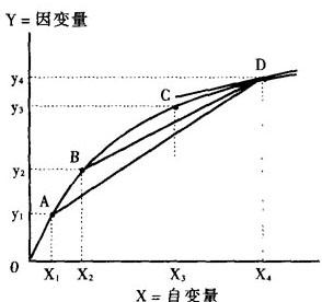 确定一个函数的导数的过程;又叫求导数。 导数的概念与边际的概念很接近。边际概念可定义为与自变量的一个单位相关的因变量的变化。通过一个函数y=f(x)中变化的特性更精确地说明这一关系,用△x表示自变量x值的变化,用△y表示因变量y值的变化, 的比值最概括地反映了上述边际概念。 求导数就是在自变量极小的场合下求 的比值。 导数的数学符号是:  其读法是"当△x接近零时,y对x的导数等于 比值的极限。" 导数作为比值极限的概念恰好等于曲线上某一点的斜率。 附图示出这个概念。  导数作为曲线斜率的示意图 图中的曲线在A点与D点之间的平均斜率测定如下:  这个平均斜率表现为连接两点的弦的斜率。同样,它可在x值的更小的区间加以测定,并用其他弦来表示。 在到达极限时,即当△x接近零时, 比值等于在曲线的D点上所作切线的斜率。 这条切线的斜率定义为函数在D点的导数 ,它测定与x值的一个很小的变化相联系的y值的边际变化。 微分是一种很好的分析方法,它通过边际分析可用来确定目标函数的最大值与最小值,提供管理经济学方面的有用信息,特别易于推广应用于解决管理决策中约束最佳化的问题。 确定一个函数的导数只要对函数应用一个基本公式就行,它在微积分教程中可以找到。 |
