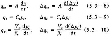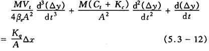 释义 | 微分方程 (1)线性化 自动控制元件与系统的运动方程常常是非线性的,而用非线性微分方程研究系统的运动规律是很困难的,故尽量对所研究的系统进行线性化处理,然后用线性理论进行分析。对于非线性函数的线性化方法有两种:一种方法是忽略那些比较次要的非线性因素,如小的死区、磁滞和干摩擦等;另一种是小偏差线性化法。 小偏差线性化法是将一个非线性函数y=f(x),在其工作点(x0,y0)展开成台劳级数,然后忽略二次以上的高阶项,就可得到代替原来非线性函数的线性化增量方程。 (A)对具有一个自变量的非线性函数f(x)的小偏差线性化增量方程为 [解] 根据流体力学的节流公式可推得 式中 ql——工作流量(或称负载流量); Cd——流量系数; w——滑阀的面积梯度; xv——阀芯位移; ρ——油液密度; ps——工作压力; pi——负载压力。 由上式可知,因Cd、w、ρ、ps为常数,故ql是一个取决于xv和pi的双变量非线性函数,因此,它又可写成 ql=f(xv,pl)(5.3-4) 根据式(5.3-2)可得工作流量qi的线性化增量方程 式(5.3-5)可写为 式中 如果以qm表示使活塞移动的流量,以qi表示泄漏流量,以qv表示体积压缩流量,根据液流连续性原理则有 ql=qm+qt+qv 并有 △qi=△qm+△qt+△qv(5.3-7) 而qm、qi、qv及其相应的增量分别为 式中 A——油缸工作面积; Ct——油缸总泄漏系数; Vt——滑阀出口至液压缸活塞两腔的总容积; βe——油的弹性模量。 液压缸的力平衡方程为 式中 M——活塞及负载的质量; B——粘性阻尼系数。 将式(5.3-7)~式(5.3-11)联立,消去中间变量,得活塞位移y对滑阀位移xv的线性化微分方程 当活塞及负载质量M小得可以忽略不计时,则上式可简化成 |