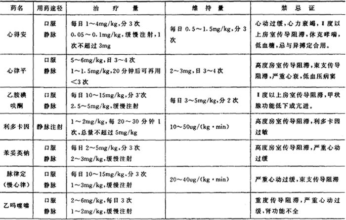释义 | 心律失常 心律失常是指心律起源部位、心搏频率与节律,以及冲动传导等方面的任何一项异常。小儿心律失常以窦性心律失常最常见,其次为各种早搏、阵发性室上性心动过速、房室传导阻滞等,属祖国医学“惊悸”、“怔忡”、“胸痹”、“晕厥”等范畴。 〔病因病机〕 心律失常种类很多,原因各异。有因各种器质性心脏病,如心肌炎、心肌病;全身性疾病如全身感染、缺氧中毒、电解质紊乱、药物作用等。以及麻醉、胸腔或心脏手术、植物神经功能失调等。亦有部分病因不明。主要机理为激动形成异常,如自律性增高、触发活动、后除极等;激动传导异常,如传导阻滞或折返形成;激动形成并激动传导异常。神经调节异常。 中医学认为本病发病部位在心脏,尚与肝、脾、肾等脏腑有关。为本虚标实证,本虚主要为心之气血阴阳亏损,实则为痰饮、瘀血、火邪夹杂等。 〔西医诊断标准〕 一、窦性心动过速 新生儿心率>200次/min,婴儿>150次/min,年长儿>120次/min。心电图P、QRS、T波顺序出现,无异常,仅频率较快。 二、窦性心动过缓 新生儿心率<90次/min,婴儿<80次/min,年长儿<60次/min。心电图P、QRS、T波顺序出现,无脱落,无异常,仅频率较慢。 三、窦性心律不齐 心电图表现窦性P波,P-R间距正常,仅P-P间距不一致,相差>0.12秒。 四、过早搏动 1.房性早搏:提前出现的房性异位P波,形态与窦性P略异。P-R间期在正常范围(>0.01秒)或有干扰性P-R间期延长。异位P波之后的QRS波与窦性QRS波相同,如发生差异性传导,则QRS波形态有变化,如异位P波发生过早,房室结区尚处于绝对不定期,则P波之后无QRS波,为未下传的房性早搏。代偿间歇多为不完全性。 2.结性早搏:提前出现的QRS波,其形态与窦性QRS波相同。逆行性P波,PⅡⅢAVF倒置,PAVR直立。逆行P波可出现在QRS波之前,其P-R间期<0.1秒;如在QRS波之后则R-P间期<0.2秒;也可嵌入QRS波之中,而无逆行P波。代偿间歇多为不完全性。 3.室性早搏:提前出现的QRS波,其前无P波。其前的QRS波增宽(年长儿>0.12秒,婴幼儿>0.1秒)、畸形,其后的T波方向与之相反。如起搏点在房室束邻近,则QRS波接近正常。代偿间歇为完全性。 五、阵发性室上性心动过速 包括房性和结性心动过速。房性心动过速为房性早搏连续出现在3次以上,R-R间隔绝对匀齐,婴幼儿心率超过230次/min,儿童超过180次/min,QRS波形态正常,如有差异性传导,则出现变异。阵发性结性心动过速为连续3次以上的结性早搏,心率在150~200次/min。 六、阵发性室性心动过速 心电图示室性早搏连续出现3次以上,心室率140~220次/min,QRS波时间增宽、畸形。可出现室性融合波或心室夺获。 七、房室传导阻滞 1.Ⅰ度房室传导阻滞:心电图上P-R间期延长,但无脱漏。 2.Ⅱ度房室传导阻滞:Ⅱ度Ⅰ型P-R间期逐次延长,终于P波后不出现QRS波。Ⅱ型P-R间期固定不变,但心室的QRS波呈规律性脱漏,房室比率大多为3∶1或2∶1。 3.Ⅲ度房室传导阻滞:即完全性房室传导阻滞,P波与QRS波群互不相关,P-P间隔及R-R间隔各自有其固定规律,房率较室率快。QRS波形态视起搏点部位而异,如在房室分支以上,则形态正常,频率较快,在分支下则QRS时间增宽、畸形、频率慢。 〔鉴别诊断〕 主要与特发性及功能性心律失常相鉴别。 良性早搏诊断依据:无心脏病史,常偶然发现。临床无自觉症状,活动如常,心脏不大,无器质性杂音。早搏在夜间或休息时多,活动后心率增快,早搏明显减少或消失。心电图示早搏呈单源性、配对型、无R落在T波上或其他心电图异常。 〔中医辨证分型要点〕 一、心气(阳)不足 头晕自汗,心悸气短,胸闷不舒,神疲乏力,动则尤甚,舌质淡,苔薄白,脉细弱结代。偏阳虚者面色 二、心血亏虚 头晕乏力,心悸不宁,面色少华,健忘少寐,舌质淡红,脉象细弱而数或结代。 三、阴虚火旺 心悸不宁,心烦少寐,头晕耳鸣,手足心热,舌红少苔或无苔,脉细数或促。 四、痰饮内阻 心悸气促,胸闷脘痞,痰多或有恶心,舌苔白腻,脉弦滑。若痰郁化火痰火扰心则心悸不安,头晕失眠,胸闷烦躁,痰多,苔黄腻,脉数。 五、血脉瘀阻 心悸不宁,胸闷或痛,或见唇甲青紫,舌质紫暗或有瘀点、瘀斑,脉涩或结代。 六、阳气虚衰 心悸气促,四肢厥冷,冷汗淋漓,面色苍白,脉微欲绝。 〔治疗〕 一、一般治疗 生活规律,睡眠充足,避免过累或紧张,预防感染。 二、中医分型治疗 1.心气(阳)不足 治法:补益心气。 方药:炙甘草汤加减。 炙甘草 党参 阿胶 麦冬 枣仁 生姜 桂枝 生地 加减:兼血瘀、胸闷憋痛、口唇紫暗者加丹参、檀香;脾虚纳呆便溏加白术、薏苡仁、砂仁;偏心阳虚者治以温阳益气、人参四逆汤合苓桂术甘汤:红参、制附片、干姜、炙甘草、桂枝、白术、茯苓。 2.心血亏虚 治法:养血安神。 方药:四物汤加味。 当归 熟地 白芍 川芎 柏子仁 龙眼肉 酸枣仁 炙甘草 加减:兼阴虚潮热、手足心热等,去熟地加生地、麦冬、五味子;兼心气虚加党参、白术、黄芪。 3.阴虚火旺 治法:滋阴降火,养心安神。 方药:天王补心丹、朱砂安神丸加减。 丹参 当归 玄参 天冬 麦冬 黄连 炙甘草 苦参 珍珠母 龙齿 加减:心悸甚、心烦易怒加黄芩、白芍、阿胶;兼气虚加党参。 4.痰饮内阻 治法:理气化痰,宁心安神。 方药:导痰汤加减。 半夏 橘红 茯苓 制胆星 枳实 菖蒲 炙甘草 桂枝 加减:兼有血瘀胸闷作痛,唇甲青紫加丹参、赤芍;若痰火扰心、胸闷烦躁、多啼善惊、舌红、苔黄腻,治宜清化