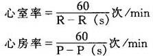 简称“心率”。 心电图的心率是指每分钟R波或P波出现的个数,分别称为心房率或心室率。心电图是计算心率的最准确的工具。心搏频率常是心律失常的鉴别诊断之一。心电图测量心率的方法有如下几种:(1)P波或R波规律时,可数R-R或P-P间0.20s的大格数或0.04s的小格数,然后将大格数除以300,或小格数除以1500即得每分钟心率。例如大格数为5,则300÷5=60,即心率为每分钟60次;(2)心律不齐时,可计算3s或6s内的QRS波群数或P波数,再分别乘以20或10,即得每分钟心室率或心房率;(3)为方便计算,可查自R-R间期推算心率表(见附录二);(4)若遇室性早搏形成二联律或三联律,计算方法和上述者相同,但应注明“包括室性早搏”字样。心律不齐时R-R取其平均值,计算心率亦应注明系平均值(如心率平均为62次/min等);(5)若用示波器时,可将扫描调整为4s,则4s里的R数×15即为心率;(6)也可用算式来表明:
