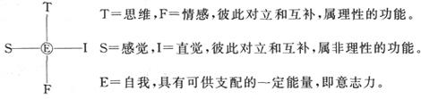 一译“心理机能”。 分析心理学术语。在各种情形下仍保持同一性的某种确定的心理活动形式。荣格认为,它是力比多的表现形式,可分为外部功能和内部功能两种。外部功能指与外部世界相联系的功能,主要有思维、情感、感觉、直觉。 思维指明感觉到的客体为何物;情感反映事物是否为个体所接受,决定事物对个体有何种价值,与喜欢和厌恶有关;感觉显示事物的存在;直觉指在没有实际材料可利用时,对事物来自何处和去向何方的预感。这四种功能通常受意志控制,且彼此对立和互补。 荣格用十字图予以表示:  一般情况下,四种功能中只有一种功能占优势,故可划分为思维型、情感型、感觉型和直觉型四种功能类型,与外倾和内倾两种态度类型搭配,形成八种性格类型。内部功能指与内在世界或阴影相联系的功能,主要有记忆、意识功能的主观因素(指对事物产生的一种不合适或不愉快的因而不愿承认的主观反应)、情绪和侵犯 |