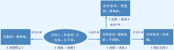 释义 | ![]() 浅浅 〈文〉 (淺) ❶ (上下或里外)距离小: 这水比较~|在~滩戏水|这栋屋子的进深较~。 深 shēn ~渊|~水区|~山老林|~宅大院|那个展厅相当~。 ❷ 简明易懂: ~显|深入~出|书的内容太~了。 深 shēn 这本书内容太~,很难懂。 ❸ 浅薄: ~人妄改古书|学识尚~|知识~陋。 深 shēn 功夫颇~|中国文化博大精~。 ❹ (颜色)淡: ~黄风衣|~色系列|她不适合穿~色服装。 深 shēn ~红|~蓝色的纽扣|这件衣服的颜色太~。 ❺ 感情不深厚: 交情太~|交~言深。 深 shēn 感情很~|~情厚谊|他们俩并无~交。 ❶从上到下或从外到里的距离小。可受程度副词修饰。 a.常作谓语,可带补语。 河水太~,不能行船|这个院子就是~了一点。 b.作定语。 ~水便于儿童学游泳|这样~的水,大船是无法通过的。 ❷程度不深;浅显;浅薄。常作谓语,可带补语。 科普读物内容较~,具有初中以上文化程度的人都能看懂|他初学武术,功夫还~得很|我们认识不久,交情很~。 ❸颜色淡。 a.作谓语,可带补语。 这幅水彩画画得挺不错,就是颜色稍微~了一点。 b.作定语。 ~绿色|~黄色。 c.作补语,要用“得”。 这部彩电的颜色调得太~了。 【近】 ❸淡 【反】 ❶深 ❸浓 【词语】 浅尝辄止 浅见 浅近 浅陋 浅露 浅色 浅说 浅滩 浅学 浅易 字源解说 戋,既是声旁也是形旁,戈戟利器,比喻河心嶙嶙耸立的礁石。浅,金文 ![]() ![]() ![]() ![]() ![]() ![]() ![]() 附 文言版《説文解字》:淺,不深也。从水戔聲。 附 白话版《说文解字》:浅,水不深。字形采用“水”作边旁,“戋”是声旁。 引申线索 ![]() 【字族索引】 戋 【同音字】 jiān qiǎn |