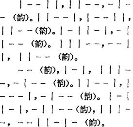 双调,共6体,正体102字,上阕11句4平韵,下阕11句5平韵。