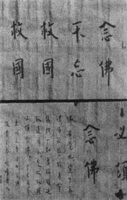 【简介】: 近代·弘一法师书于1941年冬。纸本。行楷。横幅。凡十三行,六十五字。刊于《中国书法》一九八六年第四期。 【赏析】: 这是弘一法师在一九四一年,他示寂前一年冬天所书。法师在出家后,书风截然一变,脱胎换骨而超绝尘俗,他在书法中注入了浓厚的宗敎意识,所作书大多类此。这一独特风格的形成,其渊源在于他深厚的篆书、魏碑功底,或许他早年留学日本,曾受到过日僧良宽书法的啓发。良宽的字淸虚融和,澹泊自在;而弘一法师则庄严静寂,安详雍容。结体修长简质,不蔓不枝。用笔刊落锋頴,不见起迄,圆浑而凝练,运行时微微波动,犹如锡杖画地,看似柔绵,而内蓄千钧之力。所谓“百炼钢化爲绕指柔,柔非弱,刚极乃柔。”(姚孟起《字学忆参》)出家后弘一法师的书法,如精钢百炼,去尽渣滓,进入了至高境界。 在抗日战争最艰难困苦的年代,弘一法师写出他“念佛不忘救国”的主张,可见他出家后,睠睠爱国之心未有稍减。  |