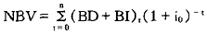 式中,NBV为总净效益现值,BDt为第t年的直接净效益;BIt为第t年的间接净效益;i0为基准折现率;n为项目寿命期。