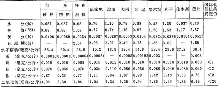 表6-62 一些甜菜糖厂成品糖中某些有害金属含量及国际规定值
