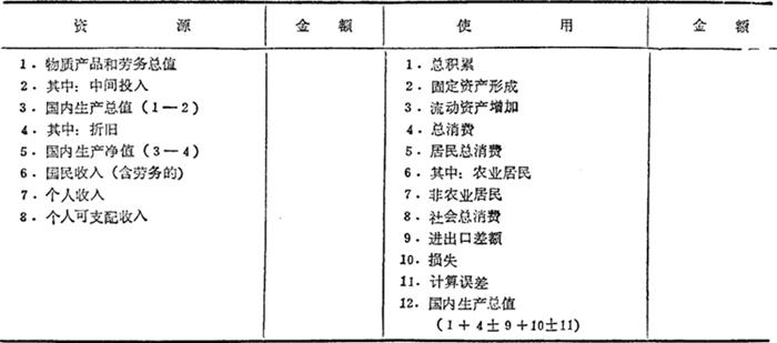 用来反映物质产品和劳务的资源与使用情况的报表。