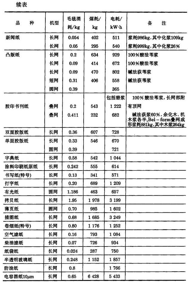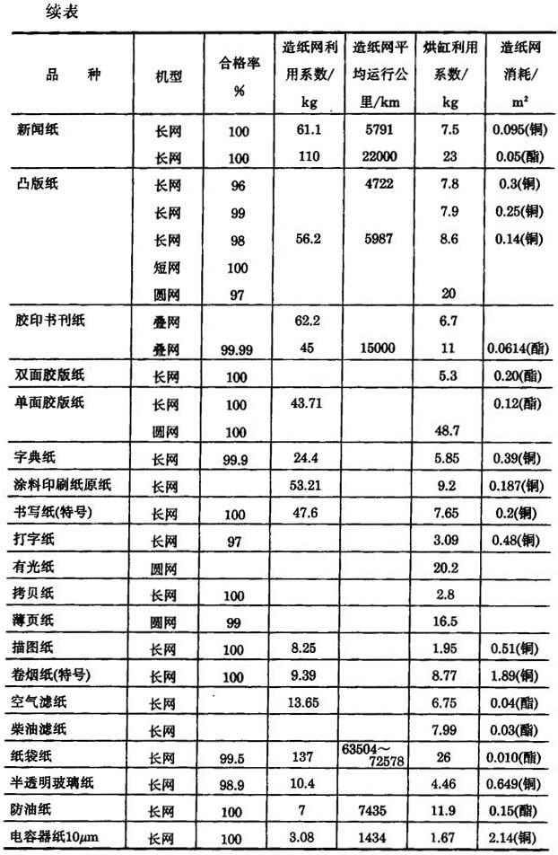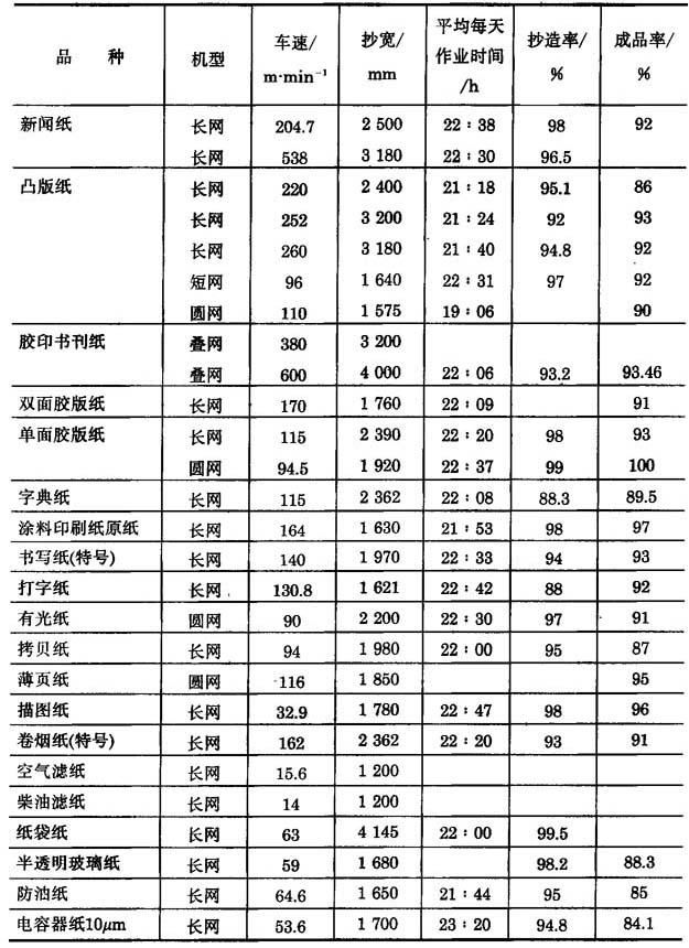 表11-1-18 为我国近年来典型纸机的生产实绩