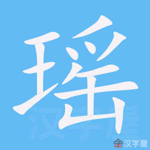 ,既是声旁也是形旁,是“遥”的省略,表示路远。瑶,篆文=(王,玉)+(“遥”,远),表示远山玉石。造字本义:远山采集的原始玉石。
