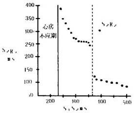 释义 | 房室结双通道检测 房室结双通道可用心房程控期前刺激或心房起搏刺激进行检测。 心房程控期前刺激,随著A1A2(PS2或S1S2)的缩短,A2-H2逐渐延长,待A1A2缩短到某一程度时,也就是与快通道的有效不应期相等时,房室传导须经慢通道下传,所以A2-H间期可突然大幅度延长,形成不连续的房室传导曲线(见图),这就是房室结内存在快、慢两个通道的表现。房室结内存在双径通道所致的阵发性心动过速,常可用适时的A1A2(PS2或S1S2)间期来诱发。 房室结双径路患者在心房程序刺激时呈不连续的房室传导曲线(跳跃性传导),即当S1S2由370ms提前到360ms时,S2R2由140ms突然延长到240ms。 |