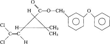 C21H20Cl2O3=391.29 CAS-52645-53-1 3-(2,2-二氯乙烯基)-2,2-二甲基环丙烷羧酸,(3-苯氧苯基)甲酯。 3-(2,2-Dichloroethenyl)-2,2-dimethylcyclopropanecarboxylic acid,(3-phenoxyphenyl)methyl ester. (±)-3-(2,2-二氯乙烯基)-2,2-二甲基环丙烷羧酸间-苯氧苄酯。 m-Phenoxybenzyl(±)-3-(2,2-dichlorovinyl)-2,2-dimethylcyclopropanecarboxylate. (±)-3-(2,2-二氯乙烯基)-2,2-二甲基环丙羧酸3-苯氧苄脂。 (±)-3-Phenoxybenzyl 3-(2,2-dichlorovinyl)-2,2-dimethylcyclopropanecarboxylate. 抗寄生虫药(兽用和农用)。 合成除虫葡类杀虫药。 哌美士林,苄氯菊酯。 Permethrin,Stomoxin,Pyreflor,Wellcare,FMC33297,Elimite,Nix,Ryposect. INN,BAN,USAN.  |