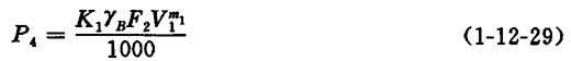 式中 P3——飞刀与纸料摩擦所消耗功率(kW) R1——飞刀与纸料的摩擦力(N) R1=KF1V0mg (1-12-26) V0——速度差(m/s) V0=V1-V2 (1-12-27) F1——浸在纸料中的飞刀片未与底刀接触的面积(m2) F1= β——纸料浸没打浆辊的角度(度),一般为20~200° Z1、δ1、L——分别表示纸料浸没飞刀的把数、飞刀片厚度(m)和飞刀的长度(m) K、m——系数及指数,与飞刀材料和表面粗糙度有关,可按表1-12-6选取 表1-12-6 与飞刀材料和表面粗糙度有关的K、m值