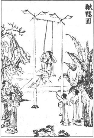 释义 | 打秋千 是清明节的习俗之一。 其源盖出于北方少数民族。《析津志》:“辽俗最重清明,上至内苑,下至士庶,俱立秋千架,日以嬉戏为乐。自前明以来,北风久革,不复有半仙之戏矣。”又云:“清明寒食,宫廷于是节最为富丽,起立彩索秋千架,自有戏蹴秋千之服,金绣衣襦,香囊结带,双双对蹴,绮筵杂进,珍馔甲于常筵。中贵之家,其乐不减于宫闱。达官贵人,豪华第宅,悉以此为除祓散怀之乐事,然有无各称其家道也。 ” |
