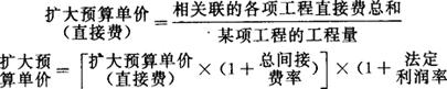 指用以计算施工程序相互比较衔接的、或者工程性质比较相同的各个分部工程,合并组成扩大分部工程的预算单价。它包括各种间接费和法定利润在内。其计算公式如下:
