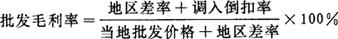 释义 | 批发毛利率 批发商店向外地供应站按固定折扣率进货,再按当地批发价格供应给其它企业的情况下,两地的批发价格不同,在批发商店的毛利率中,除了调入的倒扣率外,还包含著地区差率。所以,在确定批发商店毛利率时,要一并考虑。其计算公式如下: 〔参〕毛利率 |