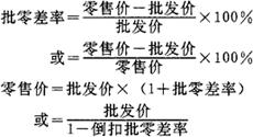 主要商品的批零差率由国家根据各种商品单价大小、经营难易、周转快慢、损耗大小、关系国计民生的重要程度等分别予以规定,据以计算零售价格。其计算公式是: