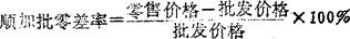 释义 | 批零差率 批零差价与批发价格或零售价格之间的比率。 以批发价格为基础进行计算的,叫“顺加批零差率”,其计算公式为: 以零售价格为基础进行计算的批零差率,叫“倒扣批零差率”,其计算公式为: 各种商品的批零差率,是由物价部门根据该类商品对国计民生的重要程度、经营难易、周转快慢、价值高低、费用开支多少、损耗大小等诸因素,分别按商品大类规定的。合理的批零差率有利于稳定市场物价,改善人民生活,促进零售企业加强经济核算和改善企业经营管理。 |