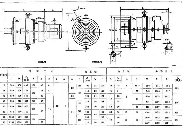 释义 | 技术参数 HJW、HJC、HJL、HJDW、HJDC、HJDL、HNW、HNC、HNL、HNDW、HXDC、HNDL、HHW、HHL、HHDW、HHDL十六个系列混合少齿差星轮减速器(ZB J19 006—88),适用输入转速为:HJ、HN减速器机型号08~28不大于1500r/min。机型号31~56不大于1000rmin;HH减速器不大于1500r/min;工作环境温度为-40~45℃。 混合少齿差星轮减速器代号示例: |