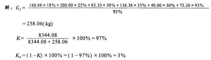 释义 | 抄造损纸率的计算 [说明]指抄造损纸量占理论抄造量的百分比。 式中 K0——抄造损纸率(%) 其它同上 [例]某厂实测长网多缸纸机一个班各部分的损纸量为:真空伏辊后是166.66kg,干度18%,真空压榨后是200.00kg,干度25%;第二压后是83.33kg,干度30%;第二压后是136.36kg,干度33%;烘缸前半部是40.00kg,干度50%;压光后是75.26kg,干度93%。该班实测抄造量为8344.08kg,计算该班的抄造率和损纸率是多少? |